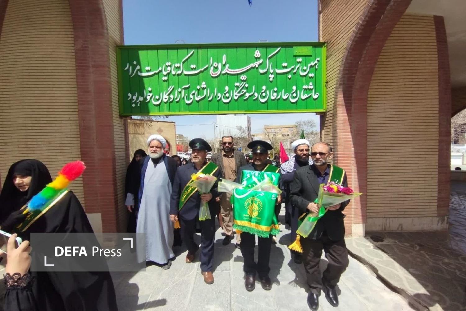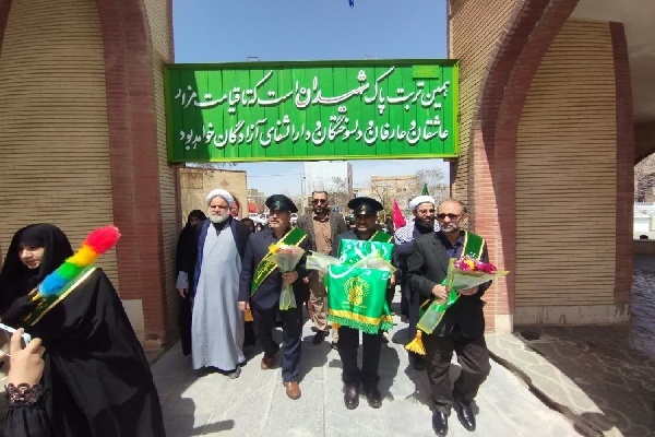تصاویر/ آیین استقبال از پرچم و خدام حضرت معصومه (س) در گلزار شهدای بیجار