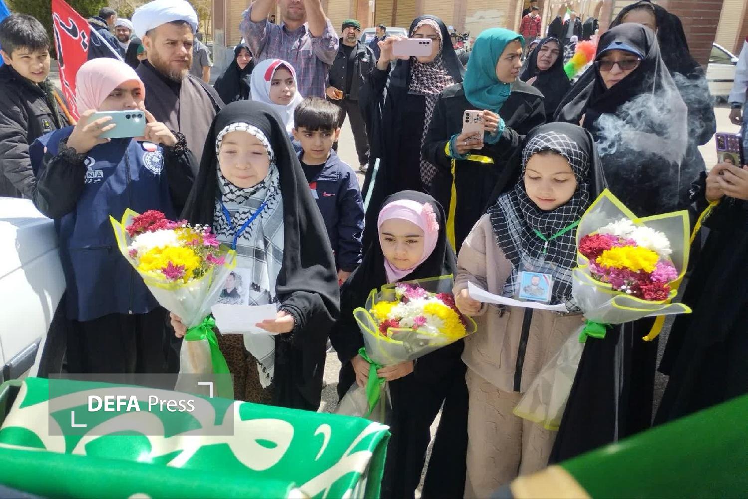به مناسبت دهه کرامت و همزمان با سالروز ولادت کریمه اهل بیت، خادمان حامل پرچم حضرت معصومه (س) در محل گلزار مطهر شهدای شهرستان بیجار با مشارکت هیات بیت الشهدا حضور پیدا کردند و مورد استقبال امام جمعه، رییس بنیاد شهید و امور ایثارگران، فرمانده ناحیه بسیج سپاه، رییس اداره تبلیغات، کارکنان ادارت و هیئات، خانوادهای شهدا و ایثارگران و مردم شریف شهرستان بیجار و شیفتگان دلدادگان آن حضرت قرار گرفتند.
