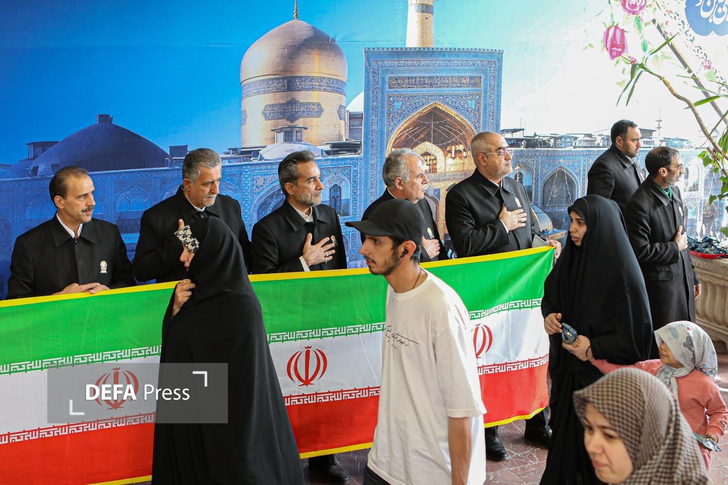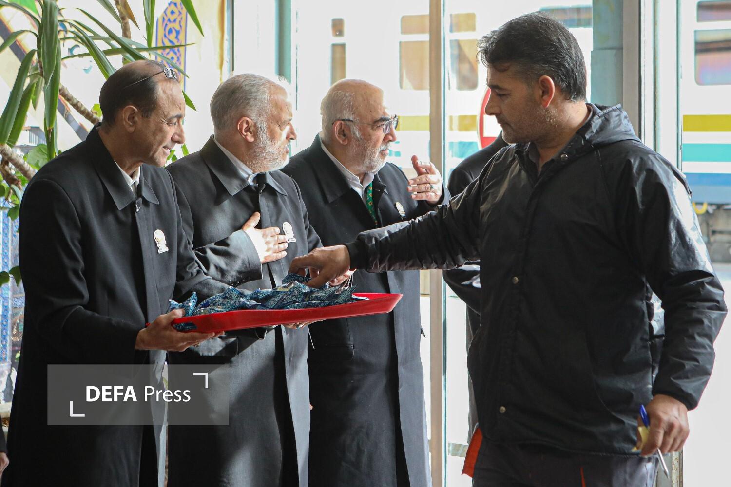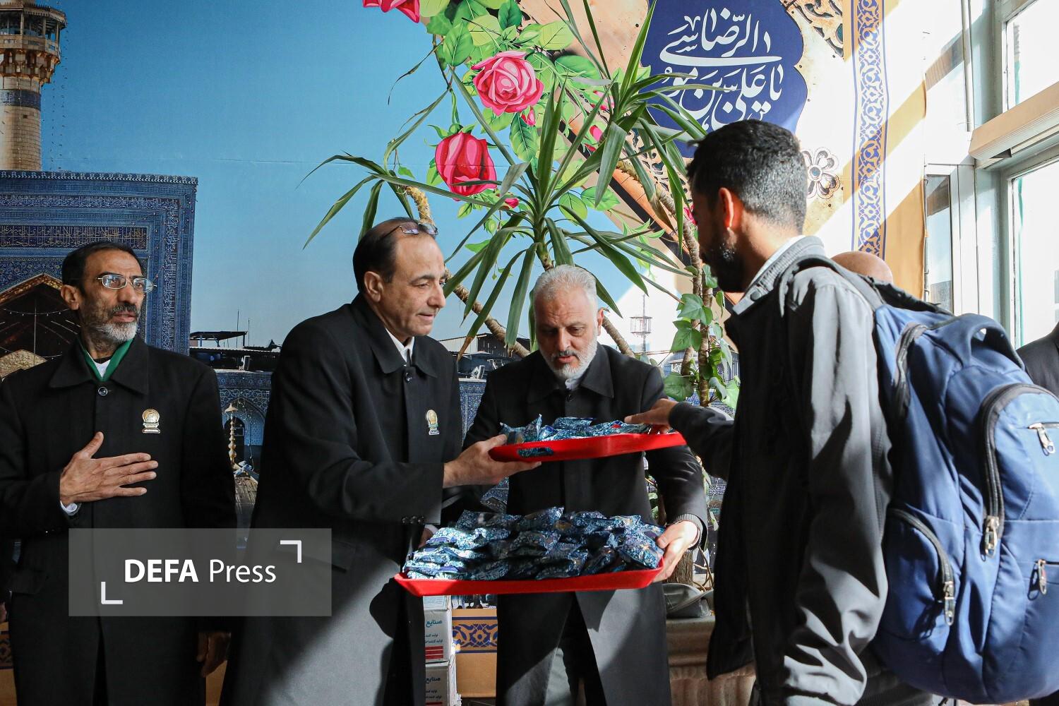 مراسم استقبال از زائرین امام رضا علیهالسلام به مناسبت دهه کرامت، با حضور خادمین بارگاه منور رضوی در ایستگاه راه آهن شهید رئیسی مشهد برگزار شد.