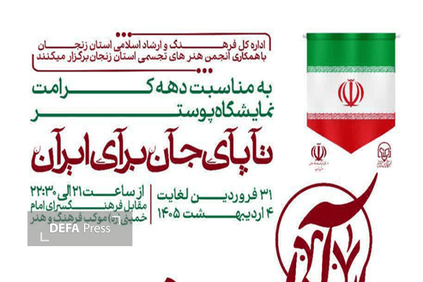 نمایشگاه پوستر «تا پای جان برای ایران» به همت اداره کل فرهنگ و ارشاد اسلامی استان زنجان و با همکاری انجمن هنرهای تجسمی استان، همزمان با دهه کرامت در زنجان افتتاح شد.