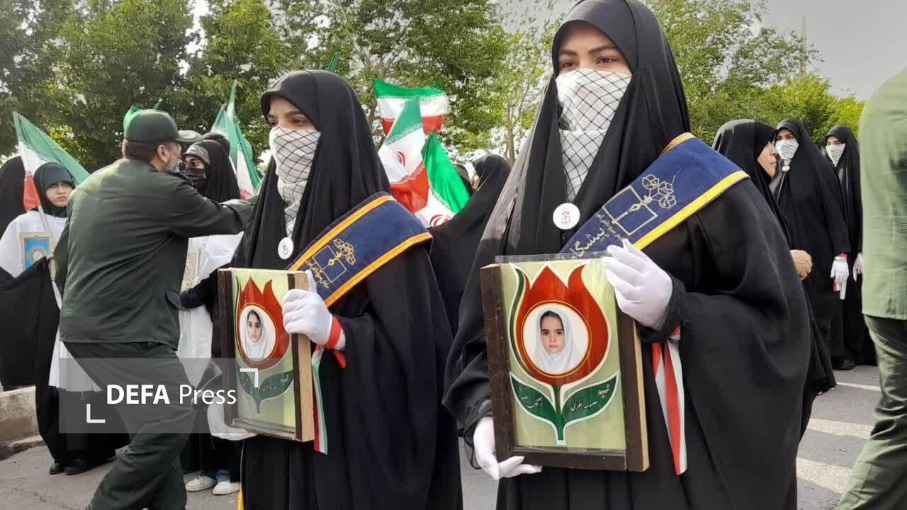 فیلم/ رزمایش بزرگ «دختران جانفدای ایران» در تهران؛ بیعت با رهبر انقلاب