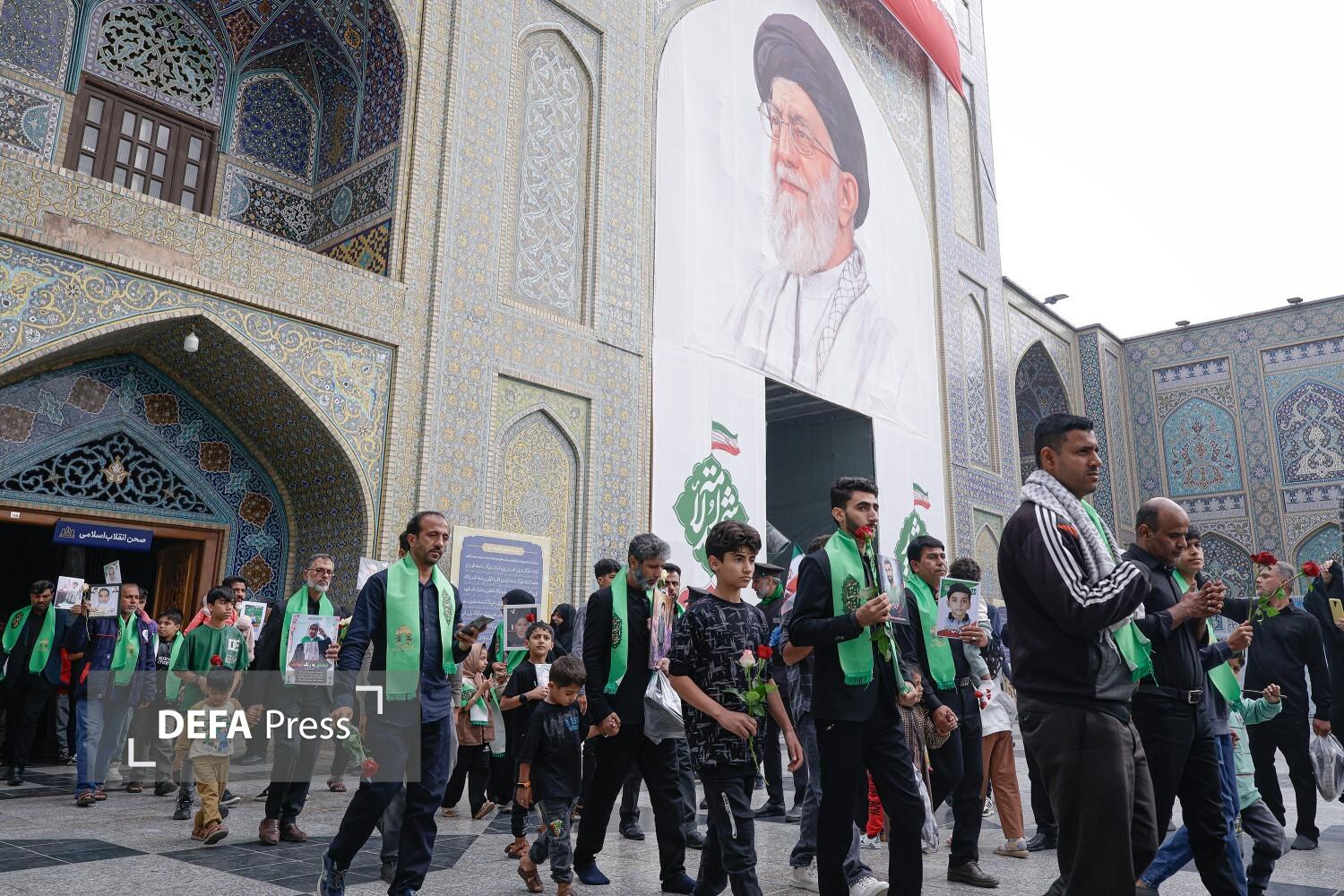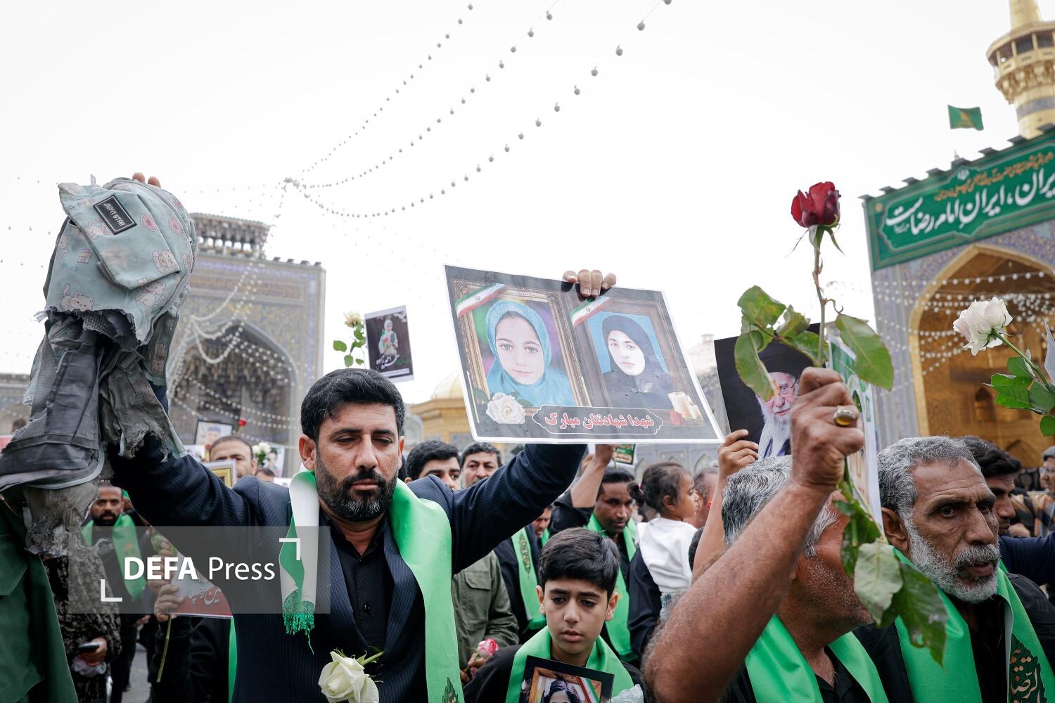 خانواده شهدای مدرسه شجره طیبه میناب، با استقبال خدام حرم مطهر رضوی به حرم امام رضا علیه‌السلام مشرف شدند.