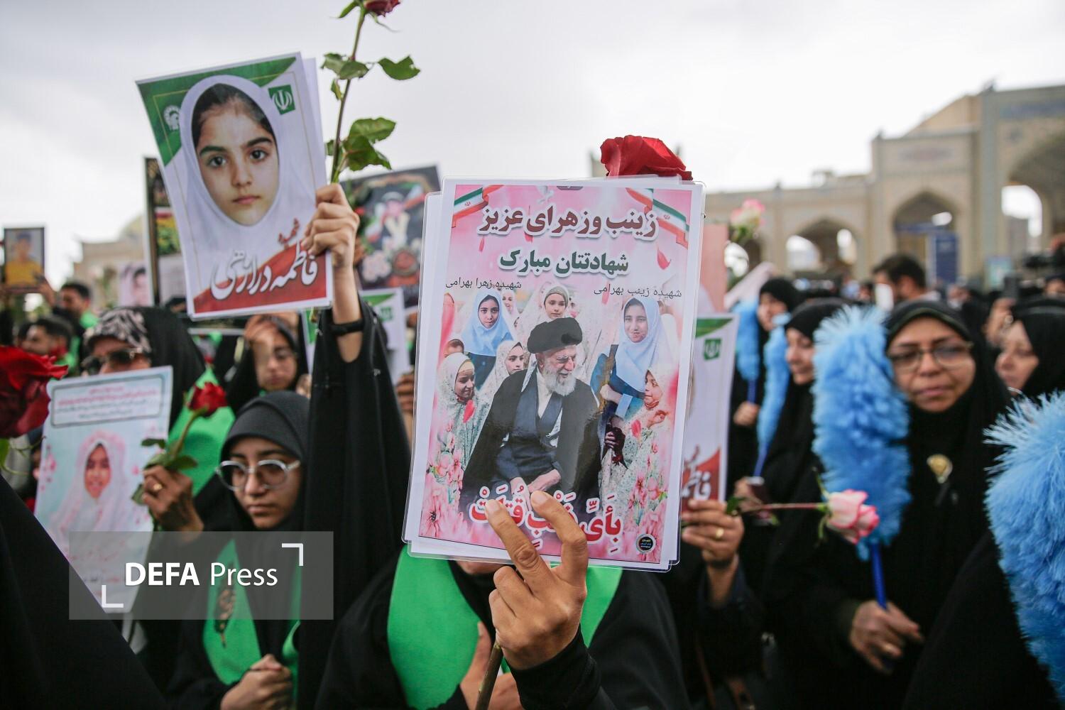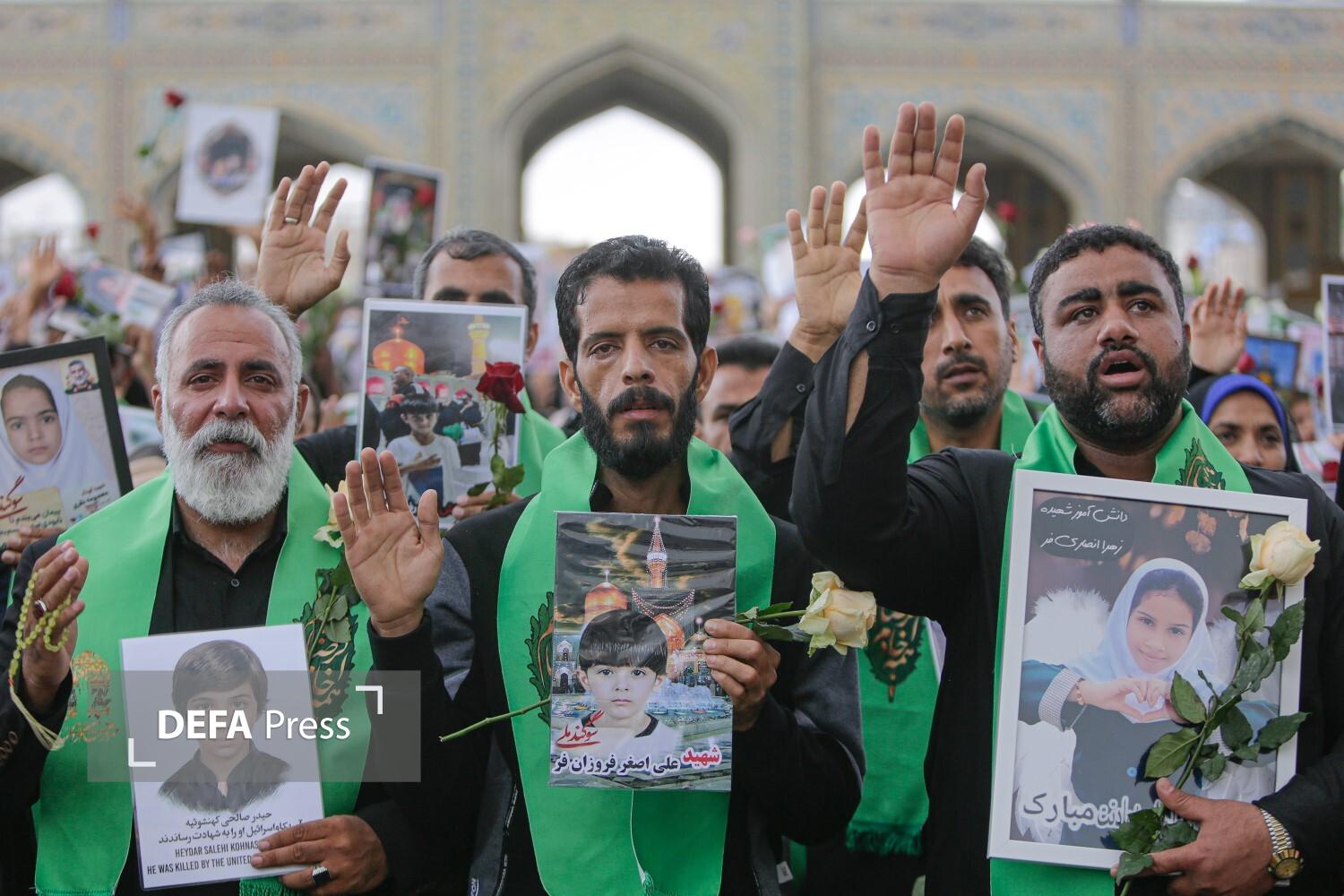 تصاویر/ تشرف خانواده‌های شهدای مدرسه «شجره طیبه» میناب به حرم مطهر رضوی