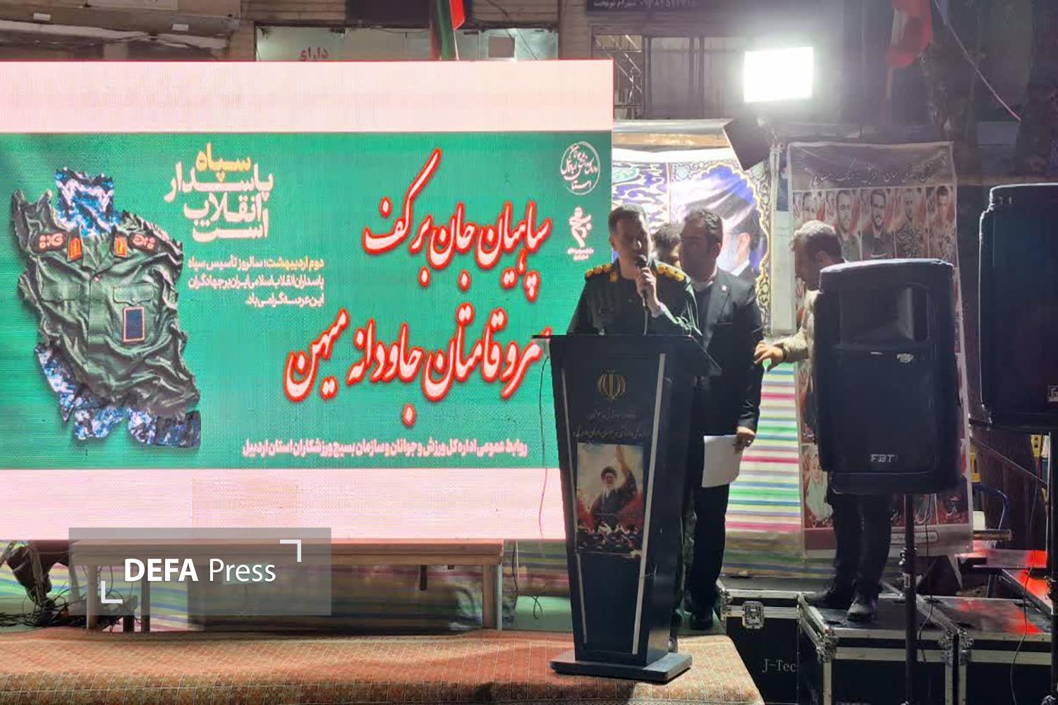 به همت اداره کل ورزش و جوانان استان اردبیل و با همکاری اداره کل حفظ آثار و نشر ارزشهای دفاع مقدس و مقاومت استان، برنامهای با محوریت گرامیداشت دوم اردیبهشتماه، سالروز تاسیس سپاه پاسداران انقلاب اسلامی در غرفه فرهنگی ورزش و جوانان برگزار شد.