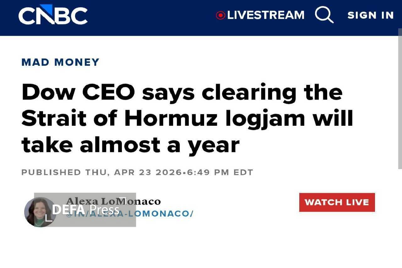 شبکه سی ان بی سی میگوید: حتی اگر تنگه همین امروز باز شود، صرفاً رفع گرههای لجستیکی نزدیک به یک سال زمان خواهد برد.