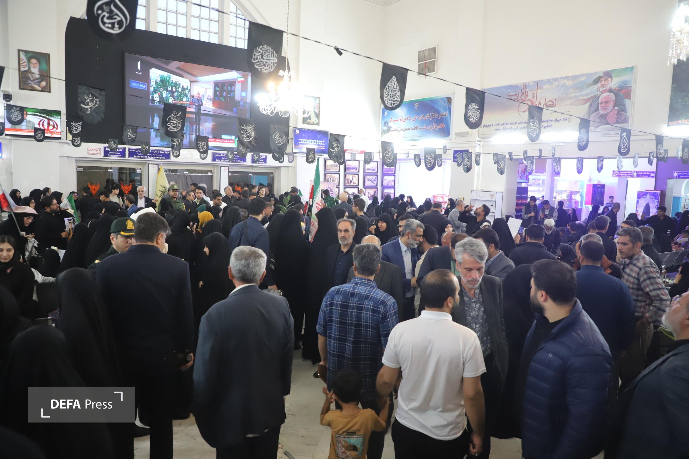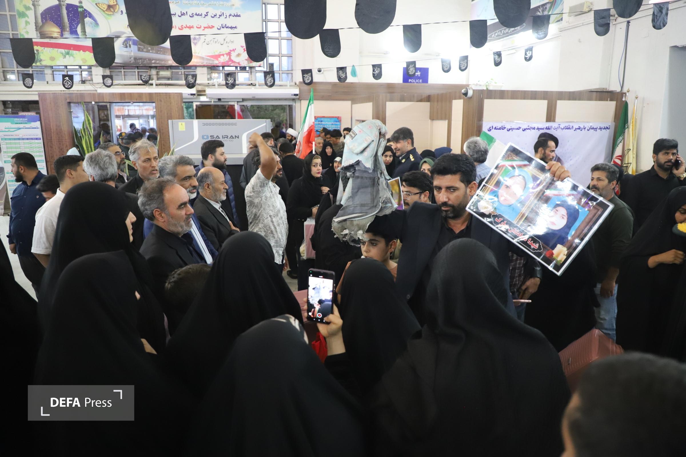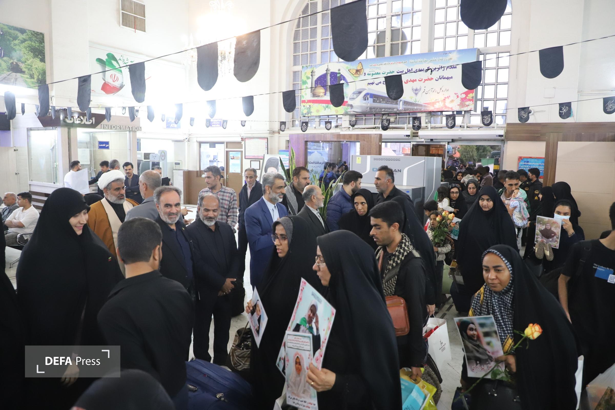 مسئولان استان قم با حضور در ایستگاه راه آهن قم خانواده های معظم شهدای دانش آموز مدرسه شجره طیبه را بدرقه کردند.