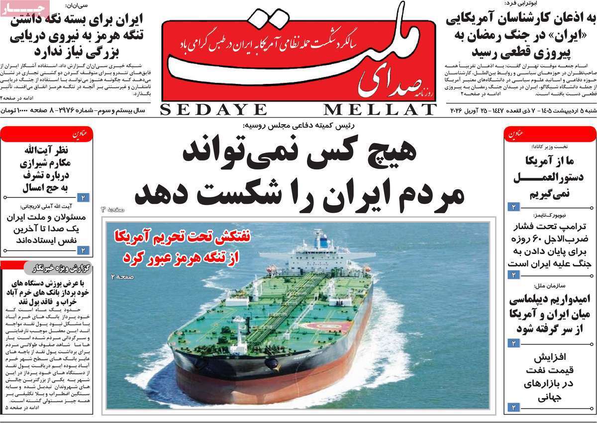 روزنامههای ۵ اردیبهشت ۱۴۰۵