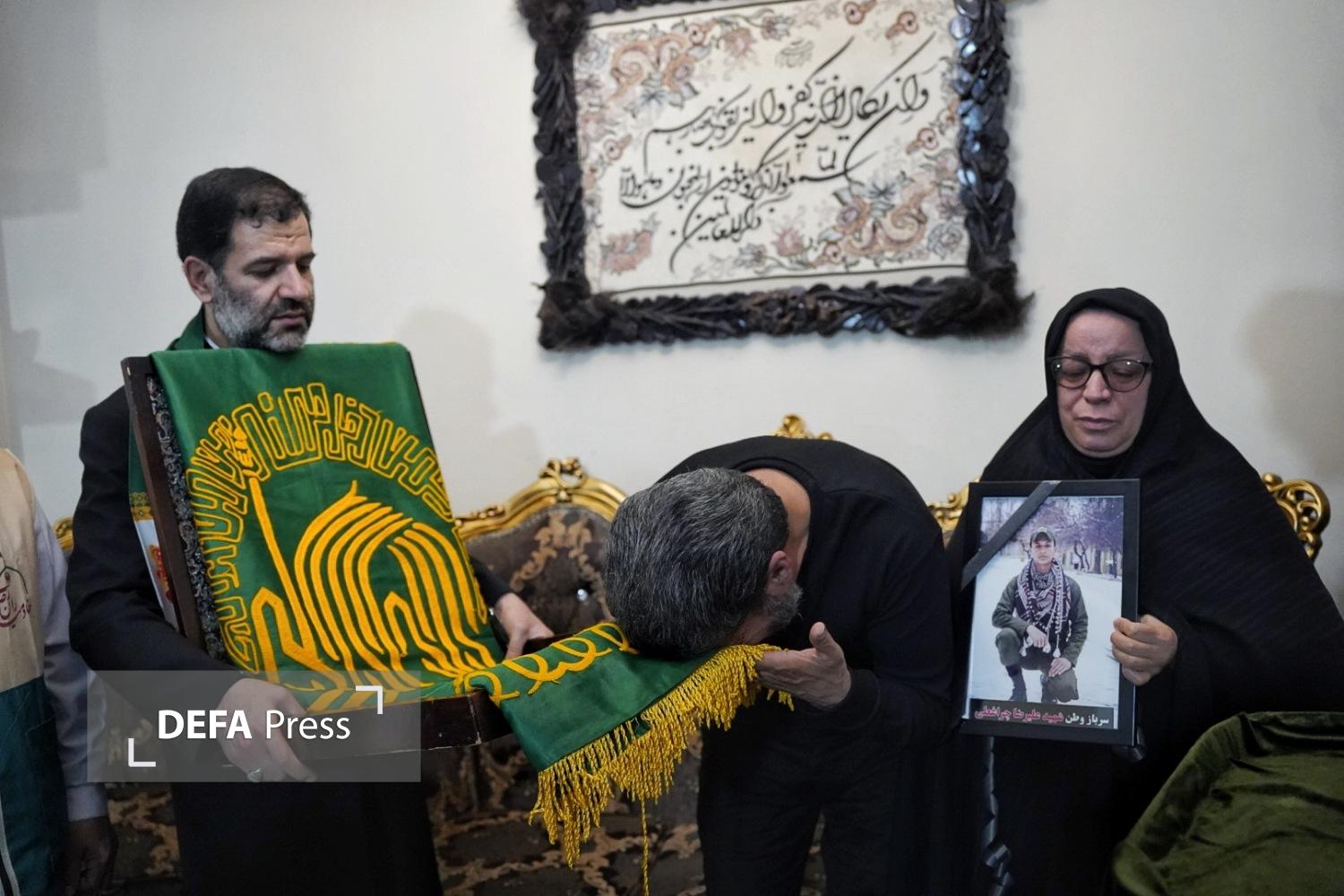 تصاویر/ شمیم پرچم متبرک حرم امام رضا(ع) در منزل شهید «علیرضا چراغعلی»