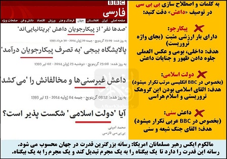 تصویری از اقدامات مقرضانه و اصطلاح سازی ها توسط شبکه بی بی سی که در جهت تطهیر خباثت های داعش انجام می شود در فضای مجازی انتشار یافت.